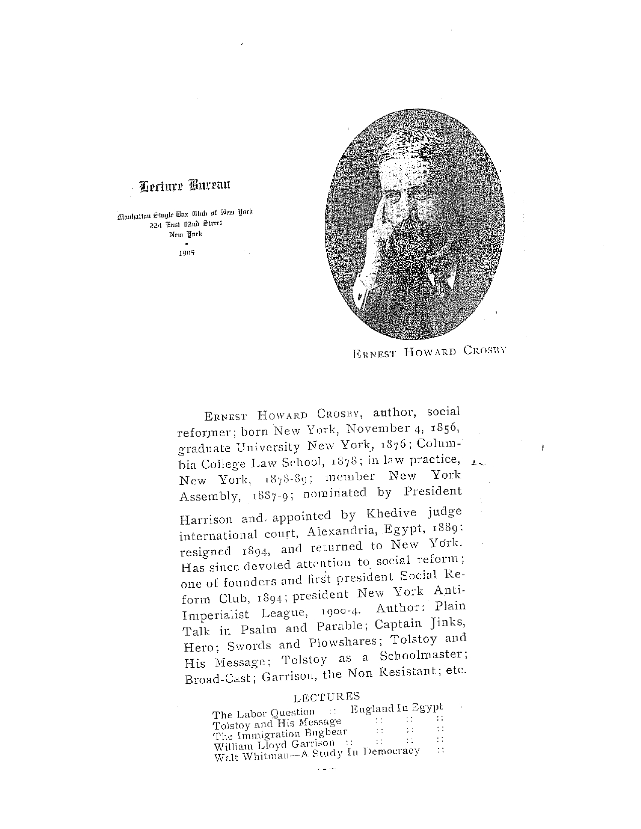 - 1890 - Serving as Vice President, Indiana Single Tax League