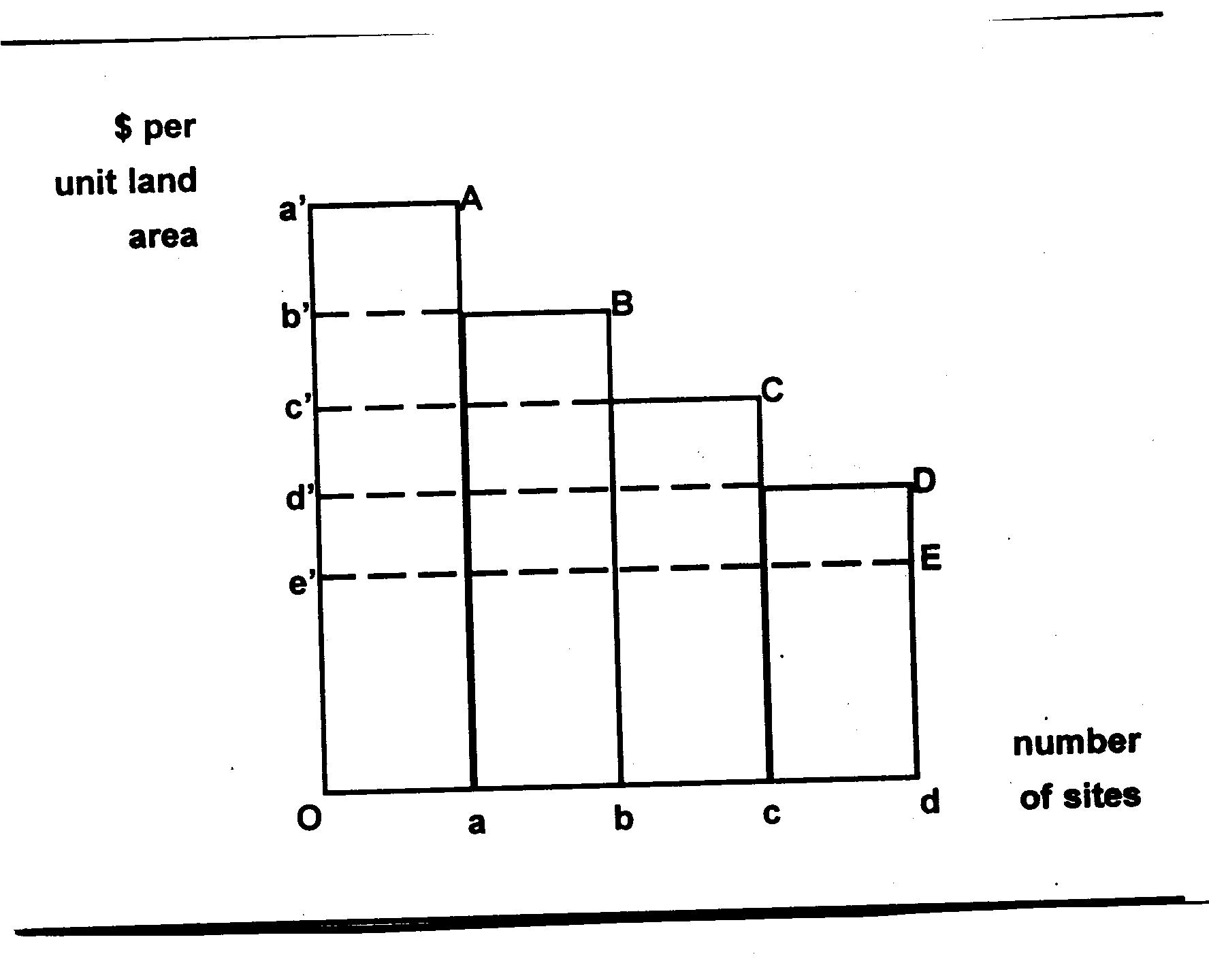 sites being occupied production per unit land area falls to b', and